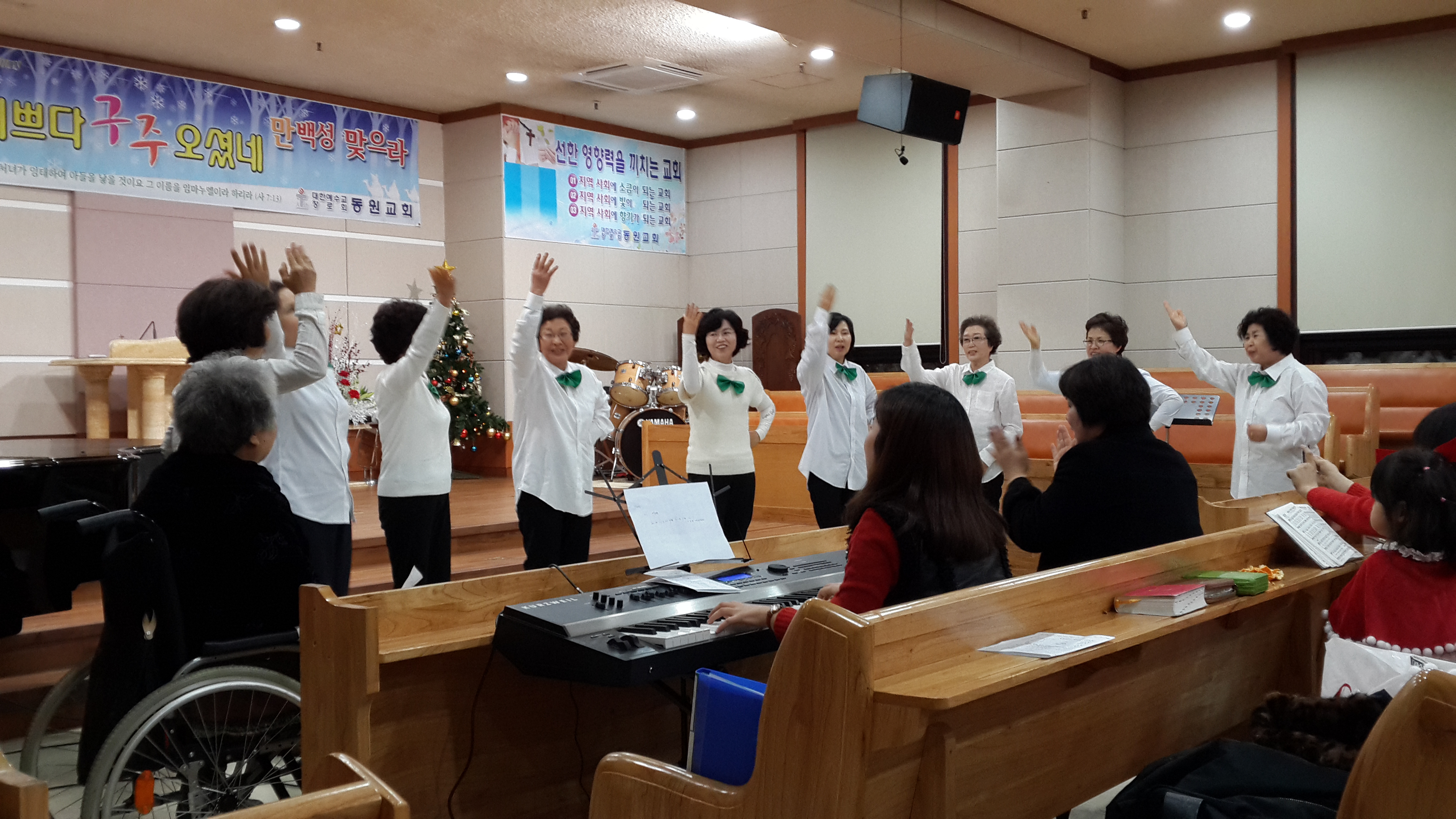 이번 2013년도에는 찬양경연대회로 성탄전야축제를 기획하며 진행하게 되었습니다. 이 성탄전야축제를 위해 가족단위로, 전도회 단위로, 교육부서 단위로 자율적인 팀 구성원들이 참가하여 주님의 탄생을 기뻐했습니다. 찬양에서 부터 기악연주, 성극, 블랙나이트에 이르기까지 다양한 장르로 성도들과 함께 기쁨의 시간을 가졌습니다. 더구나 저녁7시부터 시작된 이번 성탄전야축제를 위해 권사님과 여러 여집사님들께서 친히 김밥과 과일을 준비하여 동원식구들의 저녁을 챙겨주셨습니다. 헌신으로, 몸짓으로 수고하신 모든 성도님들께 감사드리며, 주님의 기쁜 소식이 동원식구들을 통해 더욱 풍성히 증거되는 역사가 있길 소원합니다.