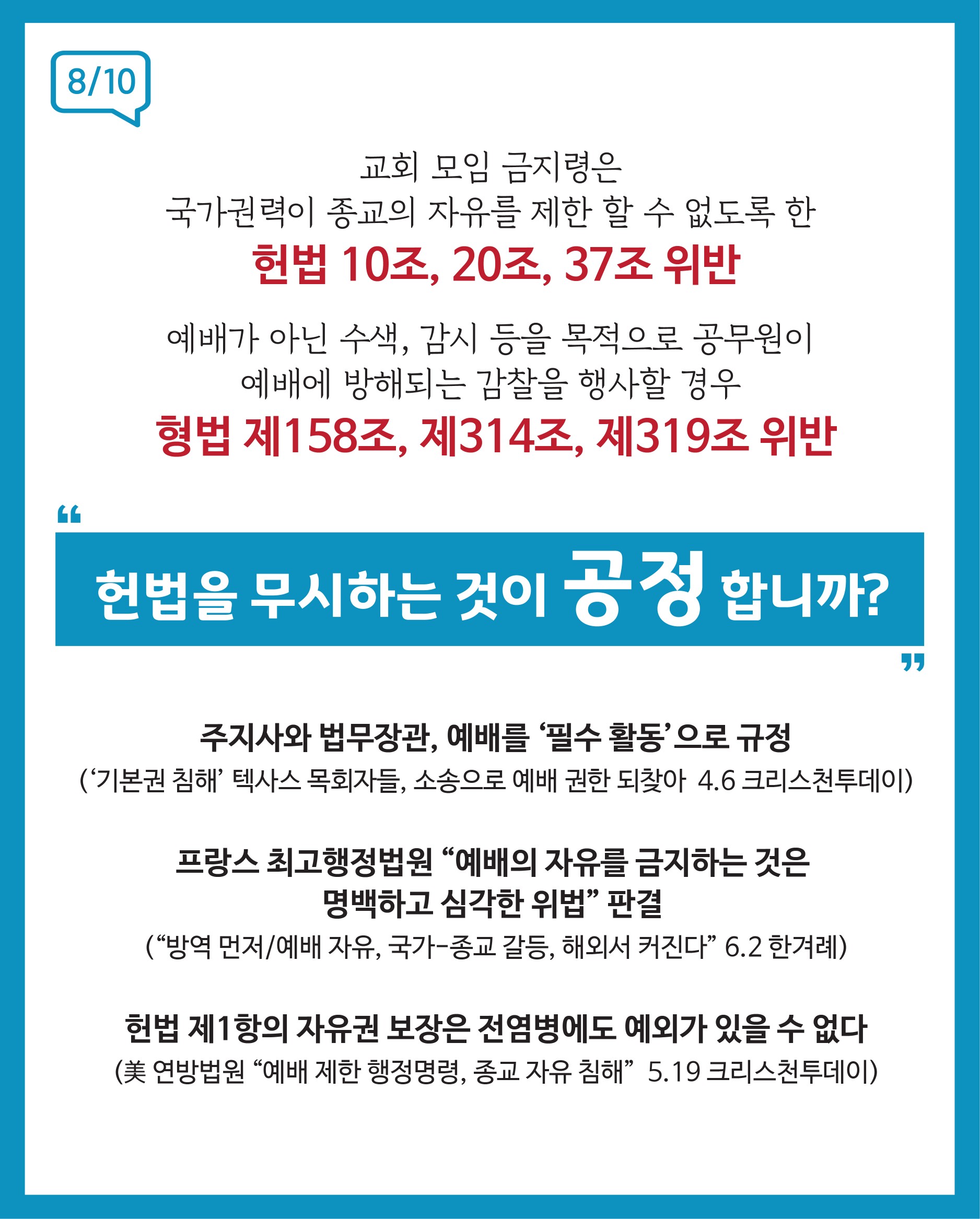 한국교회 모임금지 예배간섭 "과연 공정합니까?